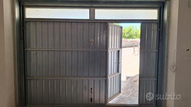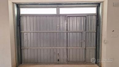 Vendo basculante in acciaio zincato, in ottime condizioni, con porta accesso pedonale e due sopraluce in vetro. No predisposizione motore. Dimensioni scorrevole 300 L x 225 H cm, dimensioni con telaio 325 x 240 cm circa. Da ritirare presso mia abitazione.