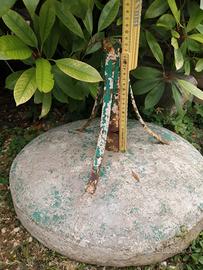 Vendo base portaombrellone in cemento con palo in ferro, ha tracce di ruggine da trattare e pitturare.