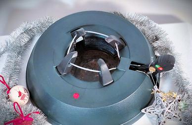 Supporto per albero di Natale di altezza fino a 220 cm – bloccaggio con sistema a fune singola tramite pedale che garantisce una pressione uniforme delle ganasce sul tronco per tenere l'albero dritto.