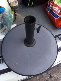 Base per ombrellone da giardino in cemento (circa 15 kili) con piedini in plastica, bordo in gomma e manopola per bloccaggio dell'ombrellone. Solo ritiro a mano in zona castelli romani.