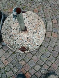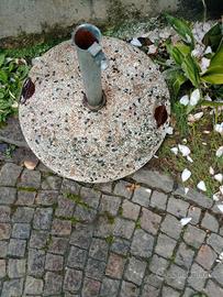 Base per ombrellone in cemento graniglia con maniglie. Diametro 60 cm. peso 25 kg. Con morsetto ferma asta.