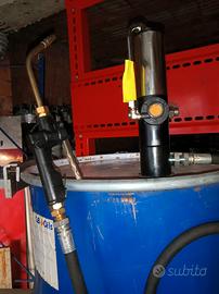 Base per lo stoccaggio da 1 fusto OLIO, GRASSO,ANTIGELO GASOLIO,marca Flexbimec completa di normative CE ,spalliera per lo staffaggio pompe o altro e Braccio laterale rotante per sollevare meccanicamente il fusto da terra e riporlo sulla base stessa senza impiego di muletti o altro.Pompa pneumatica per fusti completa di riduttore pressione ,tubo di mandata R1 pressato a macchina ,pistola di erogazione in alluminio IL TUTTO NUOVO MAI USATO .