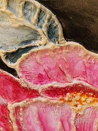 Peonia con contorni in bassorilievo, realizzata e decorata interamente a mano, cm 26x60.