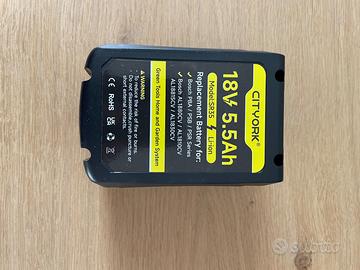 Batteria di ricambio ad alta capacità da 5500mAh per elettroutensili Bosch 18V della linea Home & Garden (Verde). Grazie alla tecnologia agli ioni di litio di ultima generazione, questo accumulatore offre un tempo di esecuzione prolungato e una vita utile superiore, risultando ideale per completare lavori impegnativi senza interruzioni. La batteria è pienamente compatibile con una vasta gamma di attrezzi Bosch PBA, PSB e PSR, inclusi tagliasiepi, trapani a batteria, tosaerba, smerigliatrici angolari e seghe circolari. Le celle di alta qualità garantiscono l'assenza dell'effetto memoria e una bassissima autoscarica, integrando sistemi di protezione avanzati contro sovraccarico, surriscaldamento e cortocircuito per la massima sicurezza operativa. Il dispositivo supporta i caricabatterie rapidi originali Bosch come i modelli AL1810CV, AL1815CV, AL1830CV e AL1880CV. Si precisa che non è compatibile con la serie di aspirapolvere Bosch Unlimited né con i caricatori AL 2204 CV e AL 2215 CV. Nella confezione, oltre alla batteria nera da 18V, sono inclusi un pennello per la pulizia dei contatti e del nastro adesivo 3M. Una soluzione potente e affidabile per rigenerare i propri strumenti da casa e giardino con prestazioni professionali.