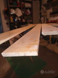 Battiscopa in legno chiaro h= 9,5: 3 pezzi 2,8 m, 2 pezzi 1,4 m, 2 pezzi 0,9 m. = totale circa 14 m