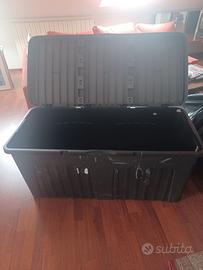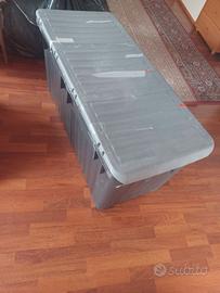 Causa inutilizzo, vendo baule plastificato come in foto. Apribile mediante cerniere e chiusura , integre. Dim. 120x55x50