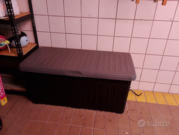 BAULE Contenitore portaoggetti multiuso, Baule moderno, 100% Made in Italy, 125x57h56 cm, Grigio. STRUTTURA E UTILIZZO Contenitore multiuso porta oggetti con coperchio, interamente costruito in polipropilene risulta solido, robusto, compatto e capiente Prodotto versatile adatto sia all'interno che all'esterno Articolo di design perfetto per la casa, garage, giardino, terrazzo, sottoscala o balconi. MADE IN ITALY L'articolo è prodotto in Italia, con l'impiego dei migliori materiali e la massima qualità e cura nei dettagli L'accortezza dei processi produttivi è sinonimo di affidabilità, resistenza e raffinatezza La Certificazione Made in Italy è garanzia di piena conformità alle normative dell'Unione Europea. CARATTERISTICHE TECNICHE Prodotto interamente realizzato con plastica riciclata, Italiana, 100% riciclabile Baule ecosostenibile interamente costruito in polipropilene, materiale antiurto, resistente al freddo e ai raggi UV, alle intemperie, agli oli e ai solventi, non assorbe gli odori e non trattiene l'umidità Il montaggio è semplice e veloce Interamente lavabile. DIMENSIONI PRODOTTO IN CM Misure: Lunghezza: 125 Larghezza: 57 Altezza: 56 cm.