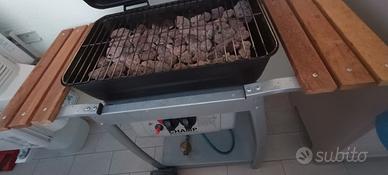 Barbecue a rotelle in buone condizioni con strato di pietra lavica tra le griglie. Ottima cottura uniforme con comodi spazi laterali di appoggio