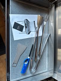 Vendo barbecue completamente in acciaio inox, compatto e resistente, con piano in pietra ollare per una cottura sana e uniforme.