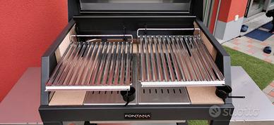 Vendo bbq usato a legna con pietra refrattaria con due griglie, ripiani laterali,