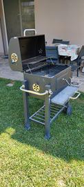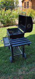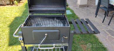 Vendo BBQ con coperchio in buona condizione, dotato di un'ampia griglia rettangolare di 57x37 cm e di una seconda griglia da 53x24 cm. Ventole laterali e Termometro sul coperchio. Piano laterale a scomparsa e Rotelle per muoverlo con comodità. Piano per raccolta cenere estraibile.