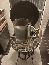 BBQ con coperchio e termometro, ideale per bricchette,tazza raccogli cenere, e tazza accenditore per bricchette. Diametro griglia 40 cm. Solo Ritiro.