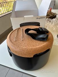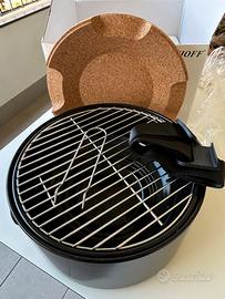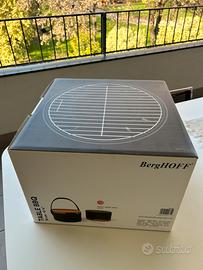 Praticissimo barbecue da tavola Berghoff dal design pluripremiato, originale e compatto per grigliare comodamente in tanti posti diversi. Corpo in carbon steel nero, completo di: cestello, griglia per grigliare e griglia per carbonella, tracolla, 2 manici staccabili, base multifunzionale in sughero, utensile per sollevare griglia.