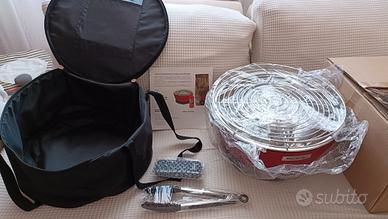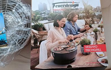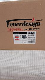 Grill da tavolo Feuerdesign mod. Vesuvio, con pinza in acciaio inox/silicone e custodia con manici per trasportarlo e riporlo