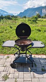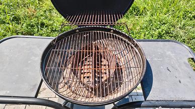 BBG a carbonella da esterno tipo Weber su pratico carrello con ripiani. Completo di doppia griglia da 57cm, vaschette per la carbonella, raccoglitore delle cenere e regolazione dei flussi dell'aria.
