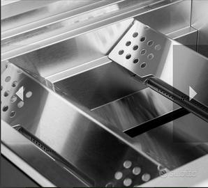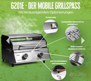 campeggio, terrazzo, balcone, Giardino ecc. dotato di borsa in cor dura per il trasporto e vetro temperato sul coperchio per il controllo della cottura. vendo per inutilizzo e regalo bombola di gas GPL.