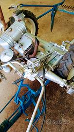 BCS riverniciato funzionante. Si avvia subito, l'unico problema sono le marce che saltano fuori, non tiene la 3 marcia. Nancante della ruota sterzante.