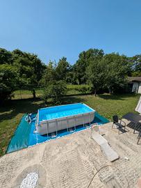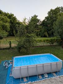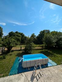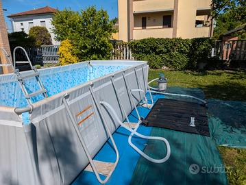 Bestway 56441 Piscina Power Steel Frame Rettangolare 4,04 m x 2,01 m x 1 m, Cap. 6.478 L (3 stagioni estive di vita appoggiata su telo idoneo sopra terreno, pulita dopo smontaggio con la canna dell'acqua prima di riporla, no idropulitrice) + scaletta e tubazioni per collegare tutti i dispositivi. Intex 28028 - Telo Termico per Piscina Rettangolare, Polietilene, Blu (usato due mesi), valore nuovo 25€ circa. Bestway 58423-6 Pannello Riscaldatore per Piscine a energia solare 110x171 (usato la stagione estiva 2025), valore nuovo 50€ circa (fornisco scontrino Amazon) Bestway 58515-7 Pompa di filtraggio a sabbia da 3.596 L, grigio (usato la stagione estiva 2025), valore nuovo 110€ circa (fornisco scontrino Amazon) Bestway 58864 Robot pulitore AquaTronix G100, grigio (fornisco ricevuta Amazon), valore nuovo 80€ circa (fornisco scontrino Amazon) Intex Aspirapolvere a Mano subacqueo 28620NP, Aspiratore per Piscina a Batteria, Grigio (usata 3 stagioni, valore nuovo circa 50€) EXTRA: Tubazioni aggiuntive, skimmer, etc. Si precisa che gli oggetti vengono venduti con la formula visto e piaciuto. A smontaggio della piscina era tutto funzionante e non risultavano perdite nella piscina. La vendita è definitiva e non saranno accettati resi, contestazioni o richieste di rimborso.