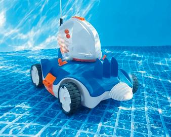 Goditi la tua piscina che a pulirla ci pensa AquaTronix! Questo robot cordless per piscine libera automaticamente il fondo dallo sporco accumulato, cambia direzione se incontra ostacoli e si spegne da solo una volta finito. Con una batteria ricaricabile a litio integrata e un tempo di ricarica di 5-6 ore, il robot aspiratore ha una mobilità illimitata perché non ha cavi e il suo ciclo di pulizia dura 90 minuti. Un sensore interno attiva l'aspiratore una volta immerso totalmente e lo disattiva se il livello dell'acqua è insufficiente, proteggendo il motore. Sono inclusi un kit per recuperare senza fatica il robot, una luce LED per l'uso notturno e i paraurti rimovibili. Le clip di blocco rendono la manutenzione e la pulizia un gioco da ragazzi: basta aprire il vano interno e rimuovere i detriti dal filtro in acciaio inossidabile. Il vano di raccolta può arrivare a contenere fino a 4,5 l di detriti prima che sia necessario svuotarlo.