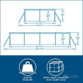 Vendesi per passaggio a modello più grande: Bestway Piscina Fuori Terra Steel Pro, Rettangolare, da 400x211x81 cm.