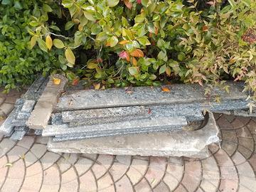 Beula in Serizzo da posizionare sopra alla zoccolo dell'esterno della casa. Lunghezza complessiva di 20 m divisa in vari pezzi da 60 / 150 / 160 cm. Profondità = 6 cm Altezza =2 cm