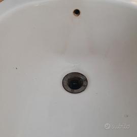 Bidet completo con miscelatore e scarico con predisposizione rubinetti laterali e uscita acqua dalla ceramica misura appoggiato al muro 55 cm. larghezza 37 cm. altezza dal pavimento 40 cm. ghiera del miscelatore ossidata fornisco nuova Io .fissaggio al pavimento o con collante o tasselli e viti apposite ritiro su Grosseto non effettuo spedizione.