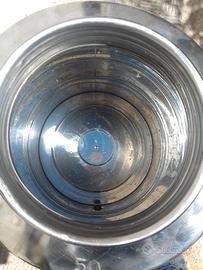 Bidone da 50 litri per olio alimentare in acciaio inox marca Supermonte, completo di rubinetto erogatore, perfetto ed utilizzato una sola volta per il trasporto dell'olio dal frantoio.