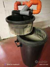 All'interno del bidone si crea appunto un Vortice che fa cadere sul fondo dal 70 al 90 % del materiale aspirato (vedi penultima foto).