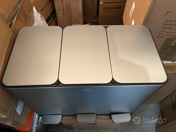 Pattumiera Differenziata 45L, Pattumiera 3 Scomparti in Acciaio Inox con Pedale, 3x15L, 20 Sacchetti Inclusi e Secchi Rimovibili