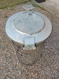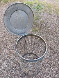 Bidone immondizia da giardino in metallo. Leggera macchia sul coperchio come da fotografie