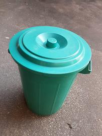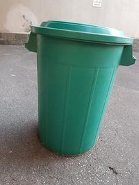 Bidone in plastica multiuso capacità circa 70 litri completo di coperchio. Molto resistente. Dimensioni: Altezza 64cm. Diametro interno 42cm. (con coperchio e' circa 48cm.). Condizioni perfette. Consegna a mano.