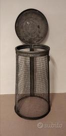Bidone, o meglio, trespolo porta sacco vintage in metallo zincato.