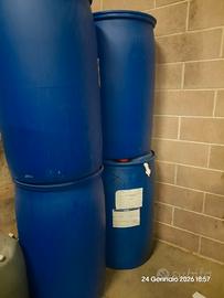 Per inutilizzo bidoni ad uso alimentare da 200 lt, usati per mangime liquido per bovini a base di zuccheri. Ottimi per riserva d'acqua in giardino o nell'orto. Tappo termosaldato, non apribile. Dispongono di 2 bocchettoni bianchi a vite, come da foto.