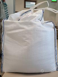 Sacconi Big Bag da 1.200 kg con manici (cinghie) e valvola di scarico apribile sul fondo.
