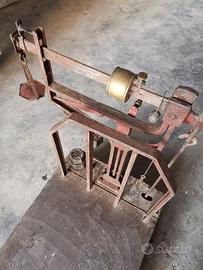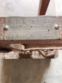 Vendo bilancia a bascula usata in passato per pesare sacchi di farina e grano in molini e pastifici. La bilancia funziona bene, ha una capacità massima di 250kg (tarabile con un peso da 1kg e due pesi da 500g in dotazione) e una precisione di 100g.