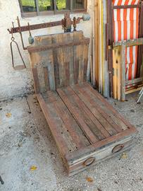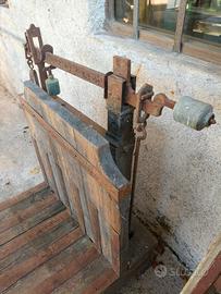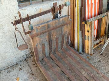 Vendo robusta bilancia a bascula d'epoca ad uso ferroviario merci. Struttura completamente originale in legno e ferro. Dimensioni: 125x70 h:110 Ritiro e trasporto a cura dell'acquirente