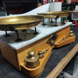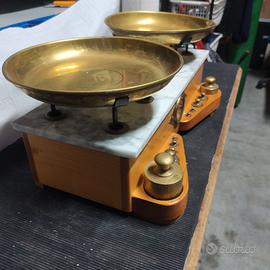 BILANCIA A DUE PIATTI VINTAGE OTTONE MARMO LEGNO