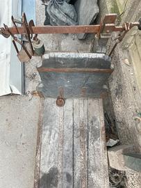 Bilancia da terra in legno con pesi, da sistemare. Ritiro di persona.