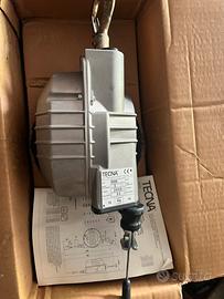 Bilanciatore professionale TECNA 9356 a corsa media della serie "Zero Gravity", progettato per carichi intermedi tra i 10 e i 14 kg. È uno strumento ideale per rendere "senza peso" utensili come avvitatori pesanti o piccole pinze di saldatura. Caratteristiche Tecniche Principali Capacità di carico: 10 – 14 kg. Corsa della fune: 2000 mm (2 metri). Materiale fune: Acciaio inossidabile. Costruzione: Corpo in lega di alluminio pressofuso, robusto e resistente agli urti. Peso del dispositivo: Circa 5,67 kg. Funzionalità e Sicurezza Bilanciamento "Zero Gravity": Permette di mantenere il carico fermo in qualsiasi posizione lungo la corsa senza che ritorni automaticamente in alto. Sicurezza integrata: Dotato di un dispositivo che blocca la caduta del carico in caso di rottura accidentale della molla. Regolazione: Il carico è facilmente registrabile tramite una vite per adattarsi esattamente al peso dell'utensile utilizzato. Limitatore di corsa: Permette di impostare il punto massimo di risalita e discesa.