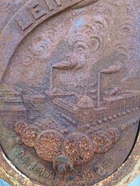 Rara segatrice Kircher, targata Stabilimenti Elettromeccanici Ansaldo -San Giorgio Genova. Motore asincrono tipo 10/41. Modello simile conservato al MUSIL - Museo dell'Industria e del Lavoro, Rodengo Saiano (BS), classificato come bene culturale.