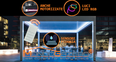 Pergola Bioclimatica in ALLUMINIO Grande qualità nuova imballata in kit di montaggio Ottimo gazebo fisso a lamelle, pompeiana importante, resistente, impermeabile Copertura che combina funzionalità ed estetica: PROTEZIONE-VENTILAZIONE-LUMINOSITA' PERGOLA BIOCLIMATICA DISPONIBILE IN 3 VERSIONI DI APERTURA LAMELLE: - MANUALE - MOTORIZZATA - MOTORIZZATA RETRATTILE Materiale: ALLUMINIO Montanti struttura: 150x150mm Trave perimetrale pergola: altezza 200mm Passo Lama: 20cm Carico Neve: 120 kg/mq Drenaggio Pioggia: 200mm/h Minuteria pergola bioclimatica tutta in acciaio INOX Doppia gronda con scarico dell'acqua alla base dei montanti della pergola (sempre 4 scarichi) Ricambi: sempre disponibili MANUALE Mod. ORION autoportante o addossata (stesso prezzo) colore BIANCO : Hsottotrave pompeiana 230cm 3,6x3,6 M - E 2.600 3x5 M - E 2.950 (6 piantoni) 3,6x5 M - E 3.500 (6 piantoni) 3,6x6,1 M - E 3.950 (6 piantoni) MOTORIZZATA Mod. PEGASO di serie compreso LED RGB-TELECOMANDO- SENSORE PIOGGIA-COPRIPIASTRE autoportante o addossata (stesso prezzo) disponibile colore: BIANCO ANTRACITE VERDE SALVIA MARRONE CORTEN: Hsottotrave pompeiana 250cm (a richiesta 280cm) 3x3 M - E 3.990 3x4 M - E 4.350 3x5 M - E 5.890 3x6 M - E 6.390 4x4 M - E 5.200 4x5 M - E 7.100 4x6 M - E 7.390 4x8 M - E 8.800 (6 piantoni) MOTORIZZATA RETRATTILE Mod. SYMPHONIA di serie compreso LED RGB-TELECOMANDO- SENSORE PIOGGIA-COPRIPIASTRE autoportante disponibile colore BIANCO - ANTRACITE: Hsottotrave pompeiana 250cm 3x3 E 6.600 3x5 E 9.500 3x6 E 10.600 4x5 E 10.800 4x6 E 12.200 4x8 E 17.900 (6 piantoni - doppio tetto) CHI SIAMO: Mondo Gazebo. lT PRIMI IN ITALIA PER LA VENDITA DI PERGOLE DI QUALITA' SHOW ROOM: visionabili sempre con appuntamento. Prezzi IVA22% COMPRESA, per ritiro in magazzino. Consegna pergola in tutta Italia a preventivo. Montaggio pompeiana semplice e veloce non richiede particolari competenze tecniche. Bioclimatica pergola 3 4 5 6 7 8 M gazebo tettoia box pensilina pompeiana