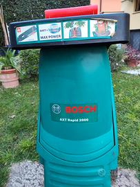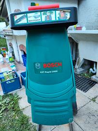 Vendo BIOTRITURATORE ELETTRICO BOSCH AXT RAPID 2020 Ottime condizioni, usato pochissimo Biotrituratore ideale per la triturazione veloce di legno e residui di giardino, grazie alle sue lame tagliate al laser che consentono di triturare rami di spessore fino a 35 mm. E’ dotato di: -un ampio imbuto di caricamento che, insieme alla paletta convogliatrice, facilita il trattamento di grandi volumi di materiale -un potente motore da 2000 W e un sistema di controllo automatico della velocità -Cavo di alimentazione non incluso -Potenza 2200 W -Larghezza 45 cm -Altezza 100 cm -Materiale Acciaio, Plastica -Con manuale istruzioni Le foto sono reali e corrispondono al prodotto in vendita. No spedizione, ritiro in loco a Roma.