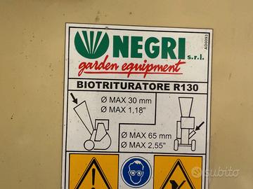 Biotrituratore - Cippatore Negri R 130 a Benzina con Motore HONDA GX270 - HP 9. Triturabile - Ø max.*: mm 65.