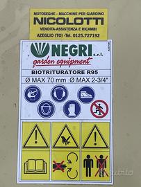 Biotrituratore Negri R95 con motore Honda GX200. Vendo causa inutilizzo. Macchinario in ottime condizioni con sole 50 ore di lavoro. Prezzo trattabile. Vendita in Valle d’Aosta. Completo di libretti d’istruzioni e scheda di collaudo. Molatura lama effettuata a dicembre 2025.