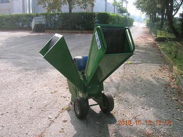 Motore elettrico 380 V trifase, 7,5 Hp. Diametro max triturabile 4 cm. Max cippabile 9 cm. Dimensioni: lunghezza 1,380 mt., larghezza 0,80 mt. Altezza 1,40. Peso kg. 170. Fornisco anche il cavo elettrico