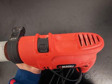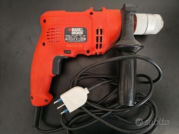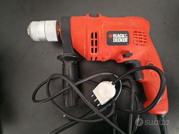 Trapano a Percussione 500W Black & Decker KR504CRE-QS In buone condizioni, funziona perfettamente. Caratteristiche tecniche: Potenza 500W Velocità regolabile 0-2800 giri/min Mandrino autoserrante da 2-13 mm Azione a percussione (47600 perc./min) Impugnatura laterale regolabile Cavo di alimentazione lungo con spina italiana Peculiarità: Trapano a percussione reversibile con impugnatura a pistola e maniglia laterale per un buon controllo durante l’uso. Adatto per legno, metallo e muratura grazie alla funzione percussione. Il mandrino gira correttamente, la velocità si regola senza problemi e il percussore funziona regolarmente.