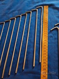 📍Nuovi mai utilizzati Riporto misure anche visibili nelle foto 🌀 n.8 picchetti lunghi cm.25,5 peso circa gr.40 l'uno 🌀 n.8 picchetti lunghi cm.22 peso circa gr.36 l'uno 🌀🌀 Regalo n.8 picchetti lunghi cm.15 peso circa gr.13 l'uno (ultima foto) ➡️➡️ Peso complessivo kg.0,750