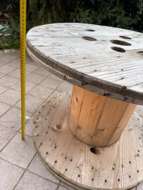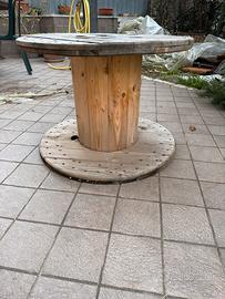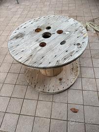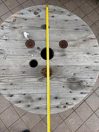 Vendo bobina cavo vuota in legno da riutilizzare come tavolo/sedie magari per il giardino o altro. Misura di diametro 70 cm X 52 di altezza.