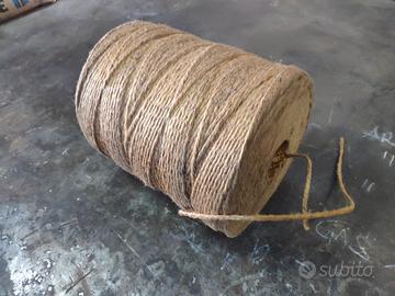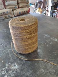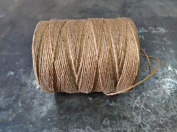 Vendo intera bobina di cima di iuta, diametro 4 mm, lunghezza 800 m. Materiale 100% naturale e biodegradabile. Ottima resistenza allo stiramento, ideale per essere appesa. Facile da tagliare o annodare per tutte le tue attività manuali. Ideale per uso in giardino, per creare ganci, imballare, legare, ecc. Lo svolgimento interno permette alla bobina di mantenere la sua forma originale durante l'uso.