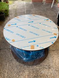 Vendo per inutilizzo bobina in legno verniciata Diametro 1m con piano in acciaio(ancora con pellicola) piu ruote Prezzo 75€